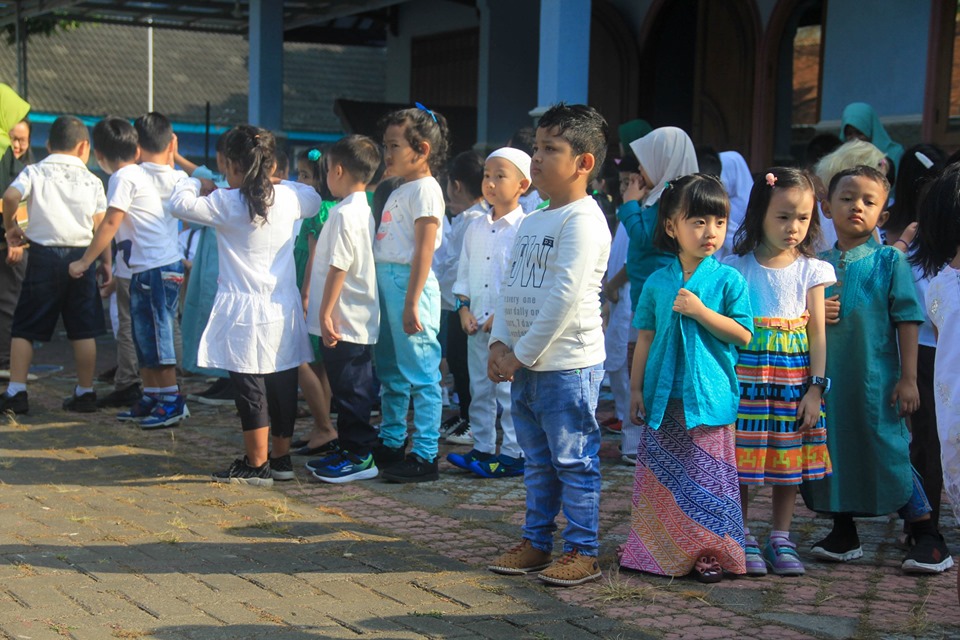 Students learnt the Muslim tradition to celebrate Idul Fitri. They gave greet and ate cookies together.